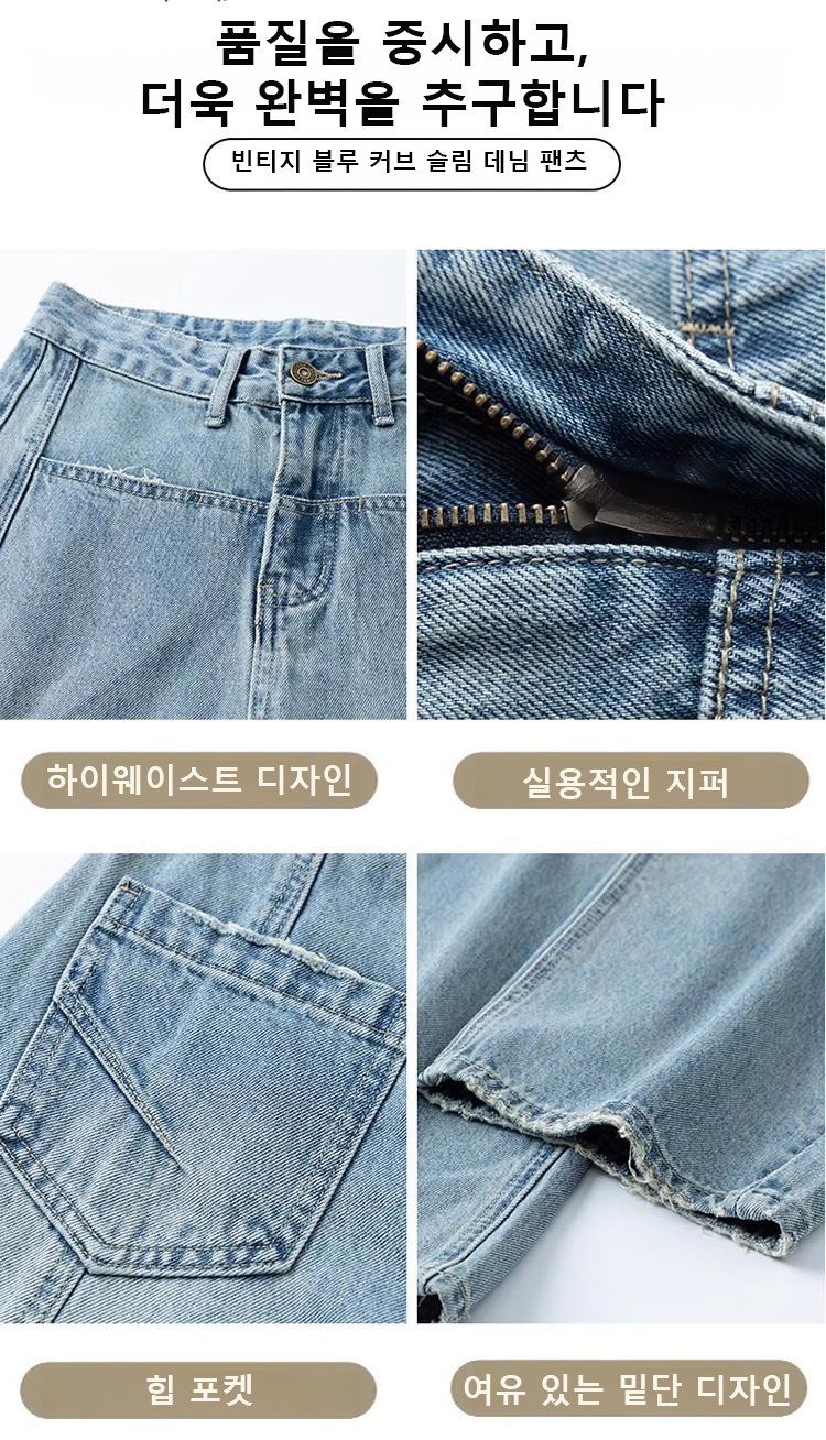 이 커브드 진은 엉덩이가 크고, 골반이 넓으며, 아랫배에 살이 많은 여성들을 위해 디자인되었습니다.